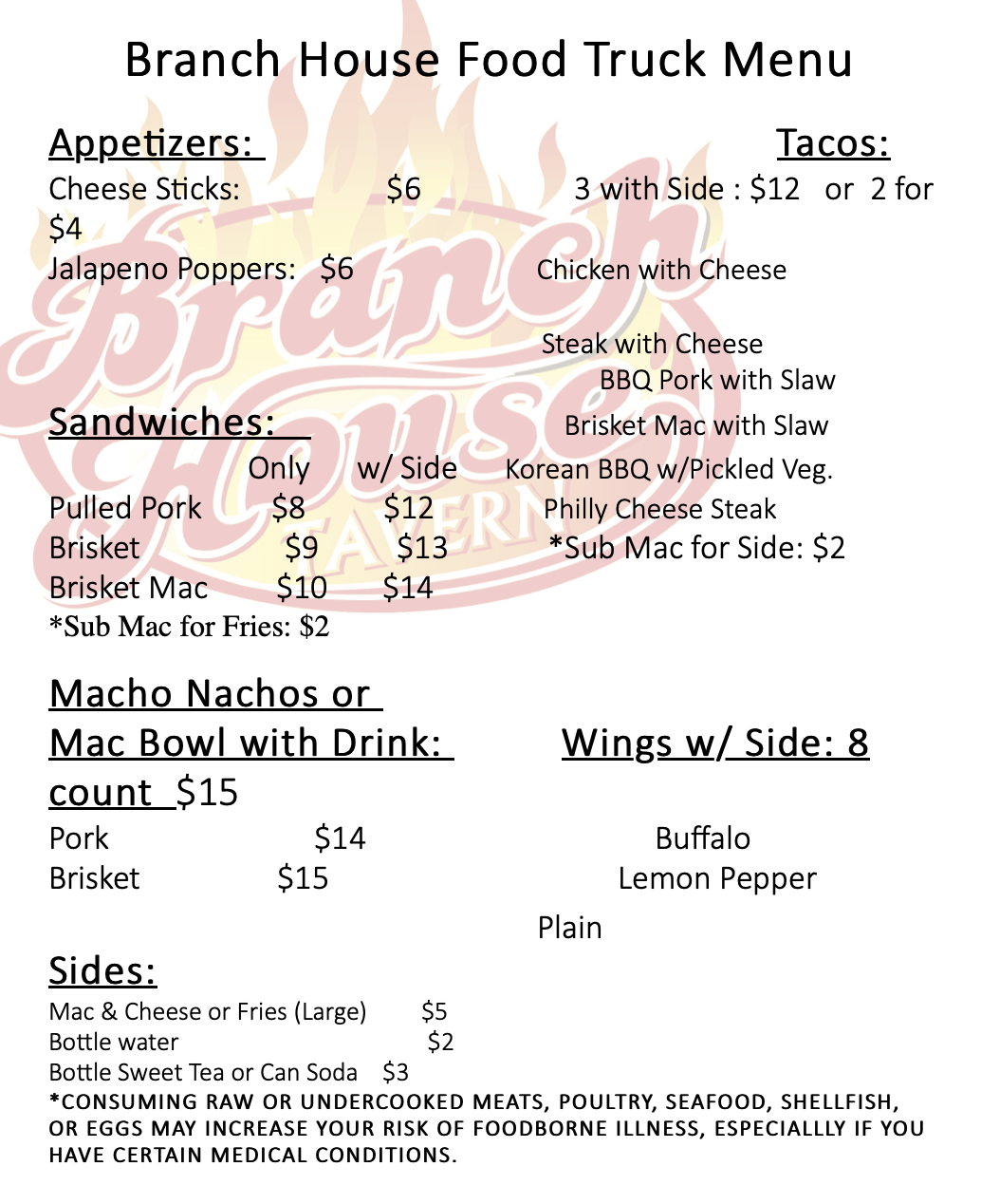Branch House Food Truck will be onsite Saturday evening. Dinner will be available for purchase.