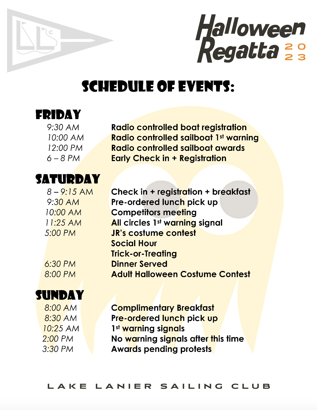Lake Lanier Sailing Club’s ever-popular, annual Halloween OPEN Regatta returns on October 27th, 28th & 29 and this will be the spookiest year yet! This event is open to all boats, (PHRF, One-Design, Portsmouth, Multihull, Juniors).